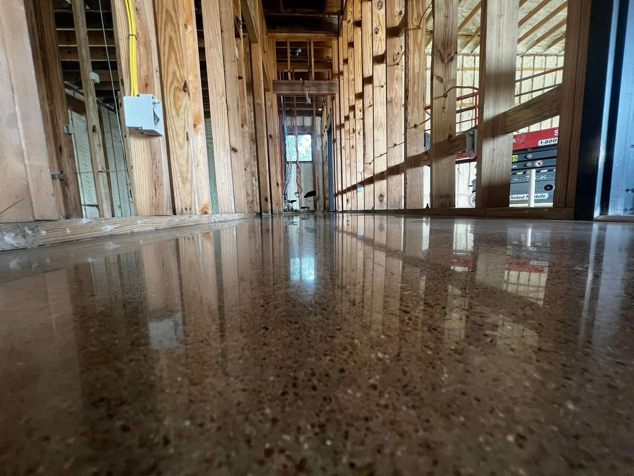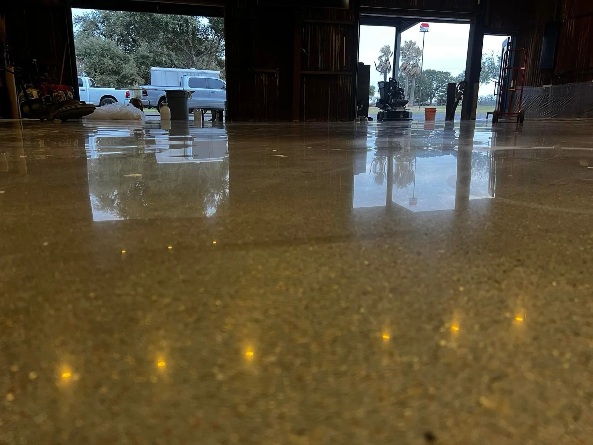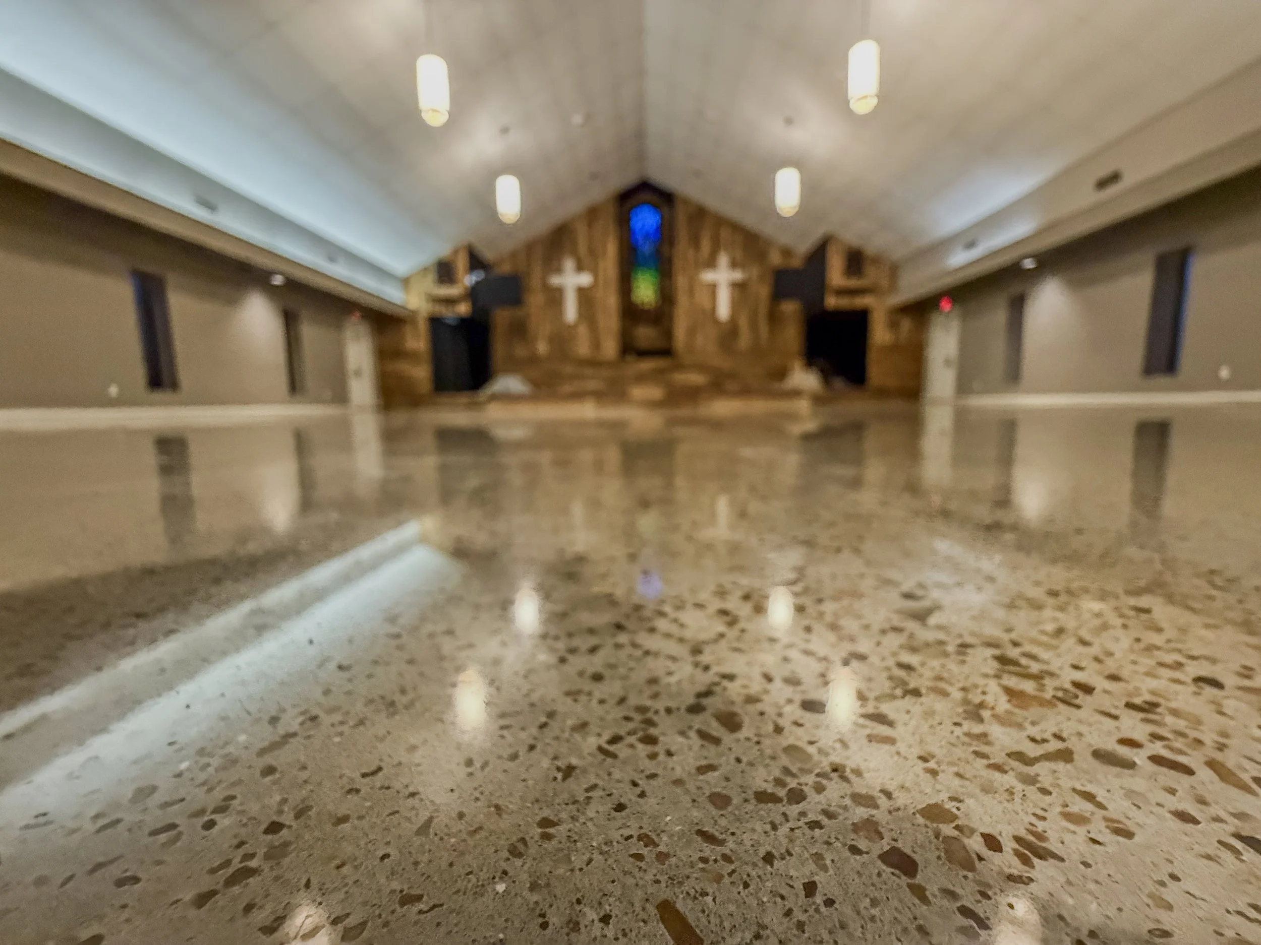 Polished concrete is our most popular and requested service. It is a sleek, modern flooring solution that enhances the natural beauty of concrete while delivering unmatched durability. Using a multi-step mechanical grinding and polishing process, we refine the surface to a smooth, glossy finish that can be customized from satin to high-gloss. This low-maintenance, dust-resistant option is perfect for both residential and commercial spaces, offering a clean, sophisticated look that stands up to heavy use. Polished concrete not only improves light reflectivity and ambiance but also reduces the need for coatings or waxes—making it a sustainable and cost-effective flooring choice.